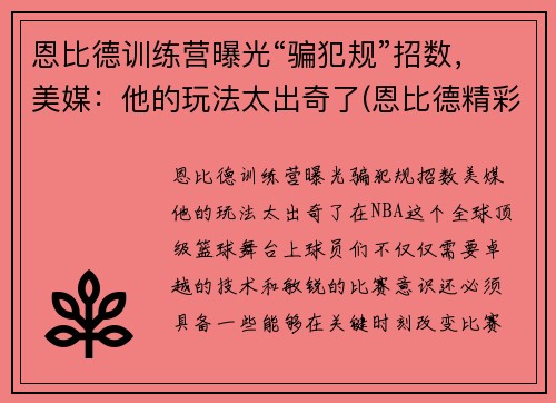 恩比德训练营曝光“骗犯规”招数,美媒:他的玩法太出奇了(恩比德精彩锦集)